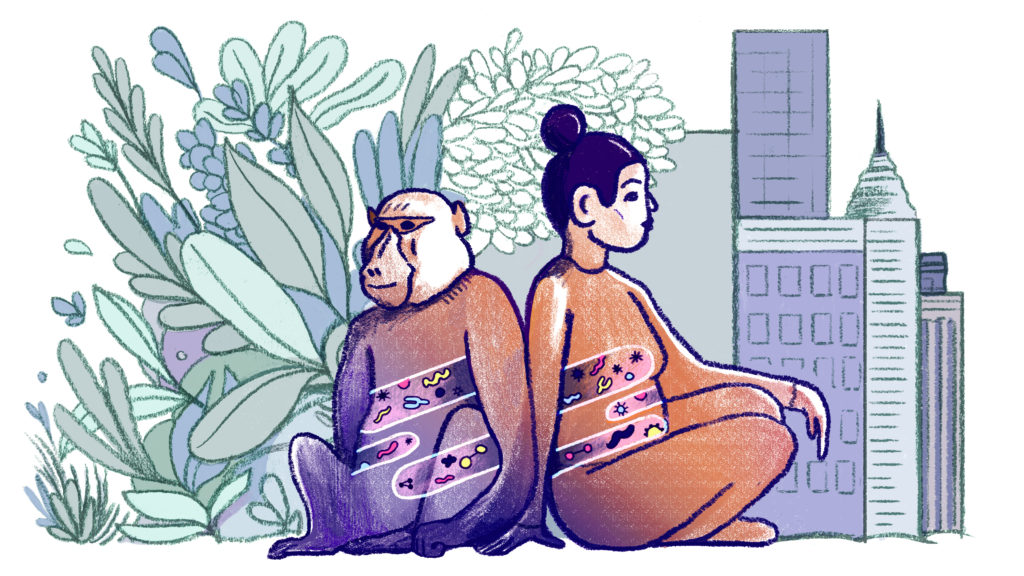 Our research explores how microbes mediate environmental impacts on human and non-human primate biology. We address these questions using health-based, ecological, and evolutionary perspectives, and we apply them to a range of species and populations. Here are a few of the ongoing projects in the lab: